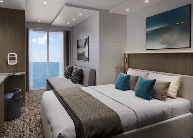 | O3 - Vonkajšia kajuta 14 m². Celoplošné neotvárateľné okno. 14. paluba - stred. Max 3 osoby. | 1 748 € 874 € za osobu |